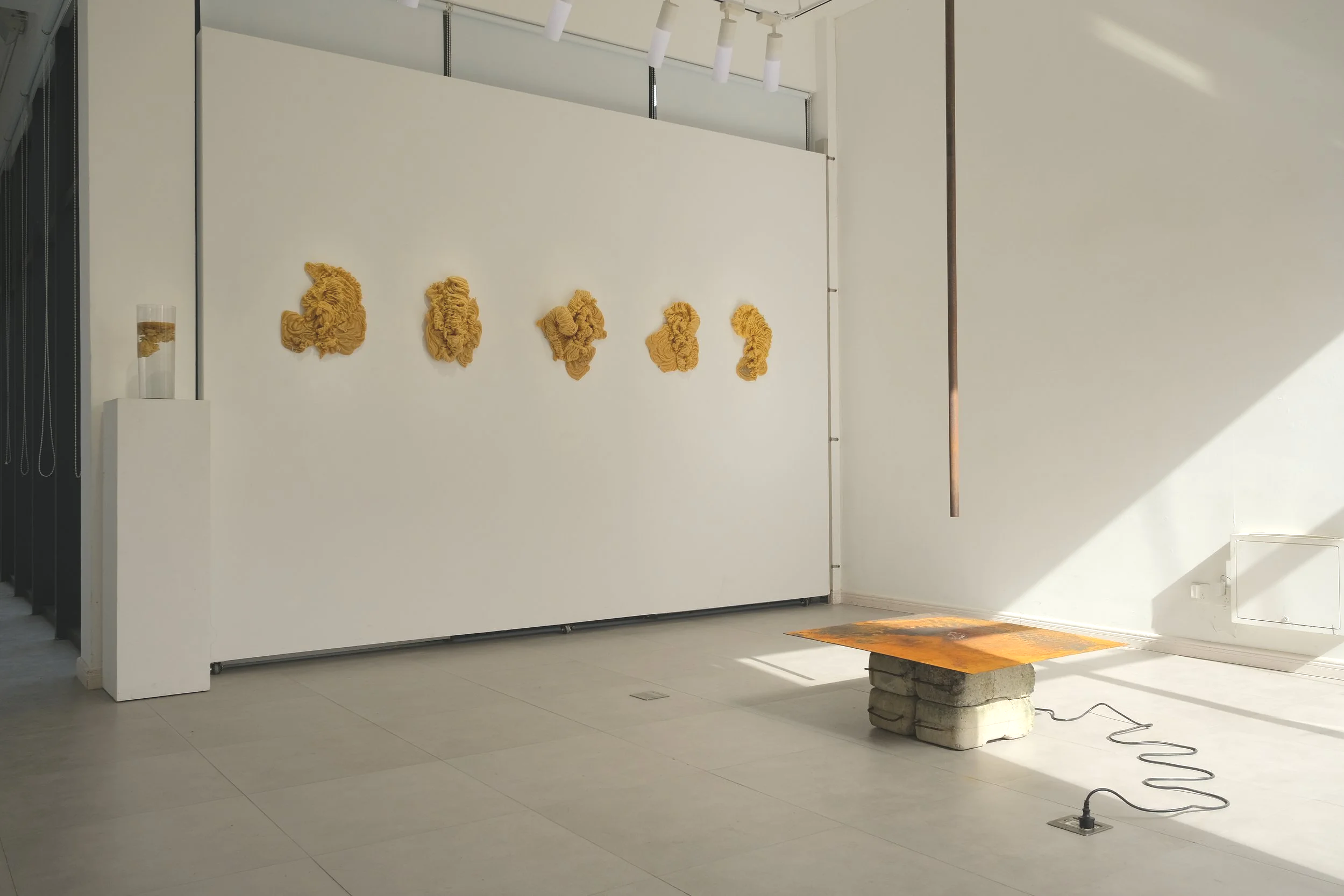 She seeks the point of contact where the flow is interrupted: there, movement stops, matter transforms, and drifts toward disappearance. It’s this frequency this moment of interference—she aims to capture.