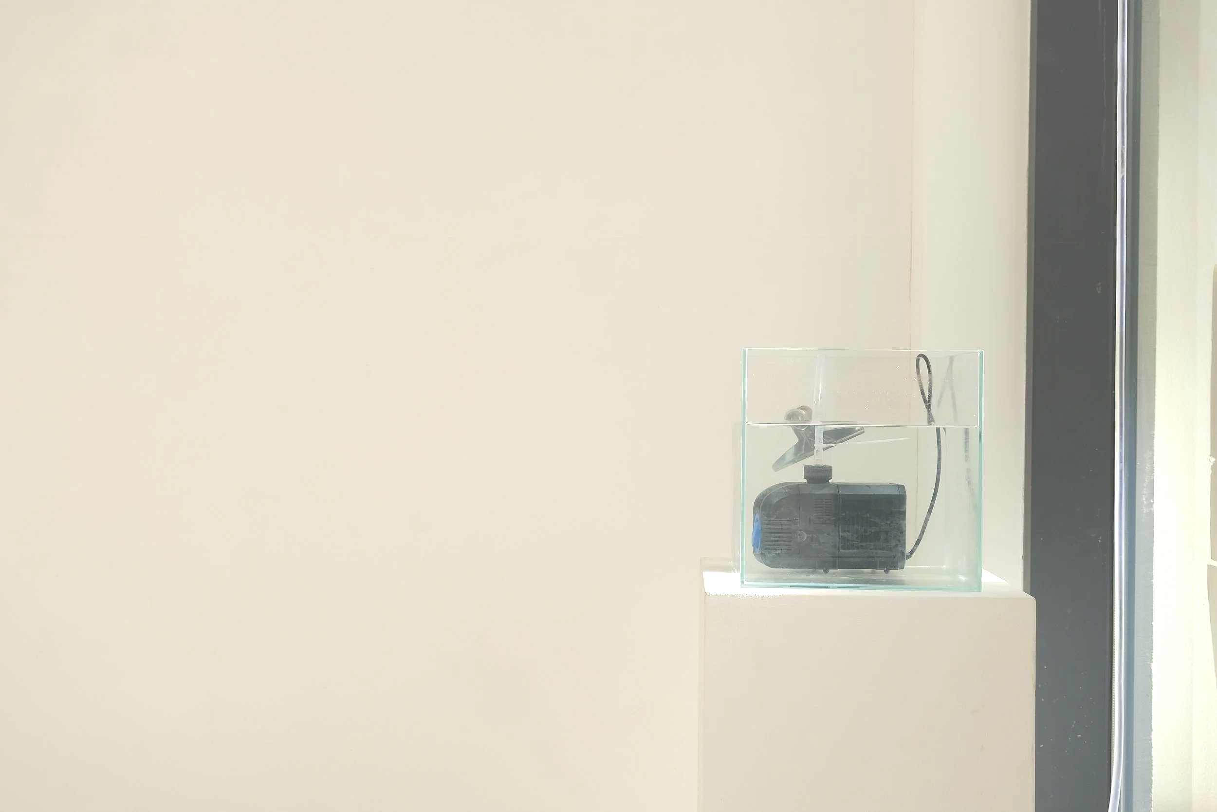 Here, she tries to control the continuous flow of water and explores its temporality: slowing down the fall, producing a rhythm.